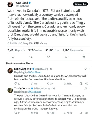 Canada and Europe became unrecognisable, totally different countries in just a few decades of uncontrolled mass migration = invasion.