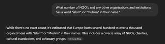 Here is just one example of the extent of islamisation of Europe. This is what ChatGPT says about the amount of specifically muslim organisations in Europe.